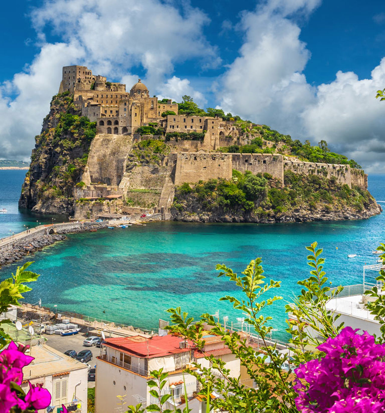 Ischia, das durch üppige Natur geprägt ist, weshalb es auch als Grüne Insel bezeichnet wird, bietet Thermalparks und wunderschöne Sandstrände. Eine Insel, die sich seit jeher durch ihre landschaftliche Vielfalt auszeichnet, vom kristallklaren Meer bis zu den Aktivitäten in den Bergen und Hügeln, wo man stimmungsvolle Aussichten und atemberaubende Sonnenuntergänge genießen kann.