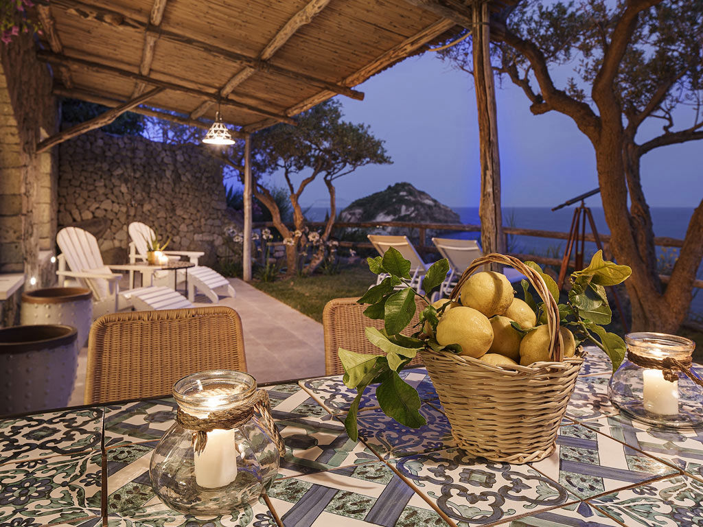 Harmonie, angenehmheit und Authentizität, eingeschlossen in diesem Raum zwischen dem Grün der mediterranen Vegetation und dem Blau des Himmels.