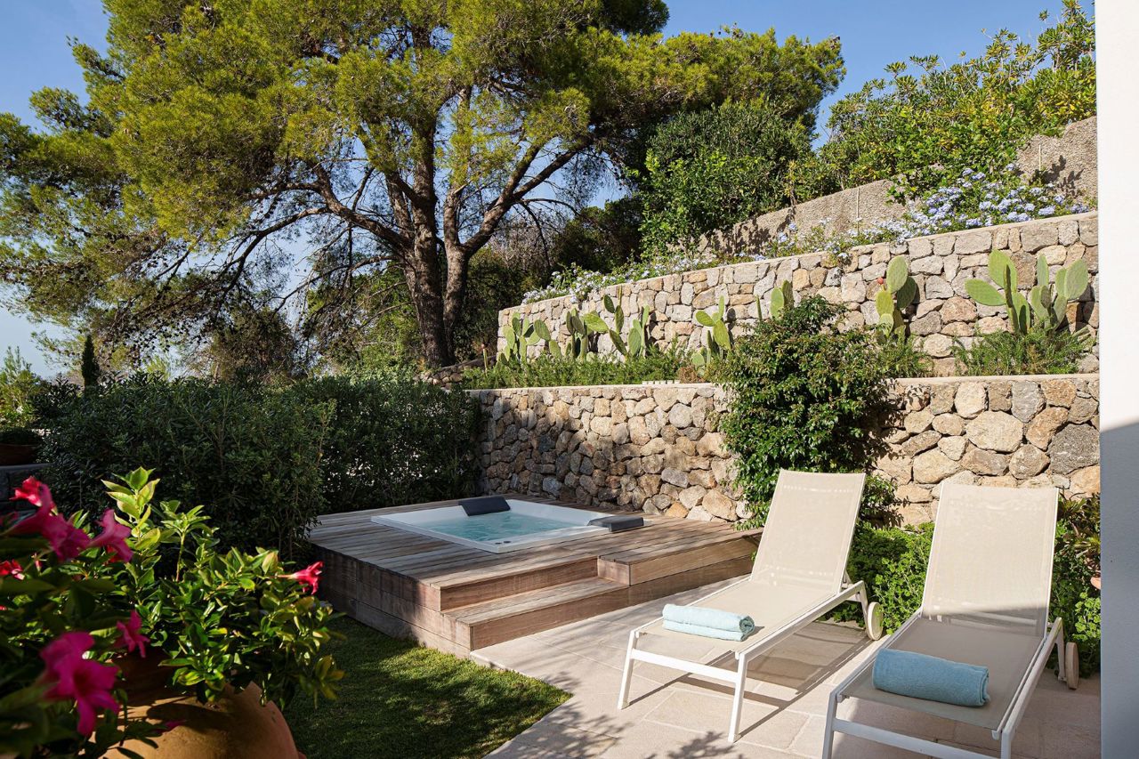 La Chambre Signature offre une atmosphère élégante et accueillante, avec des tons pastel doux et des détails raffinés tels que la tête de lit incurvée et les appliques murales dorées. L'espace est enrichi d'éléments décoratifs qui créent une ambiance sophistiquée. Le véritable atout de cette chambre est sa terrasse-jardin privée, un coin exclusif dédié à la détente, agrémenté d'une mini piscine invitant à des instants de pur bien-être et de tranquillité.